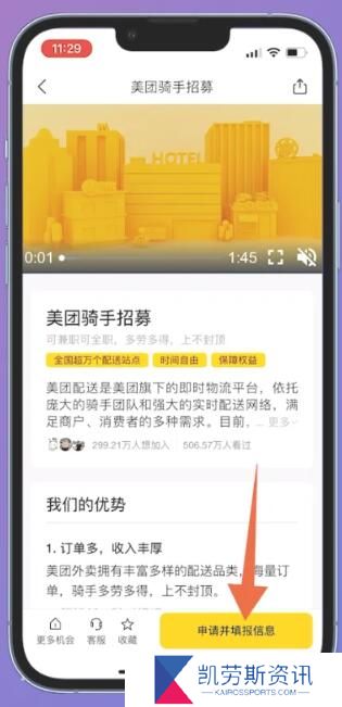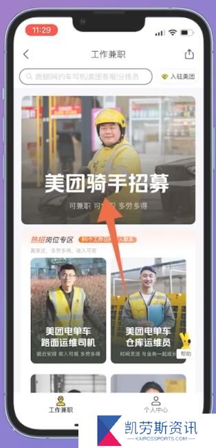 3、点击上方的美团骑手招募。